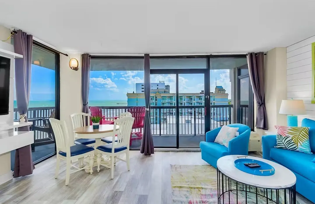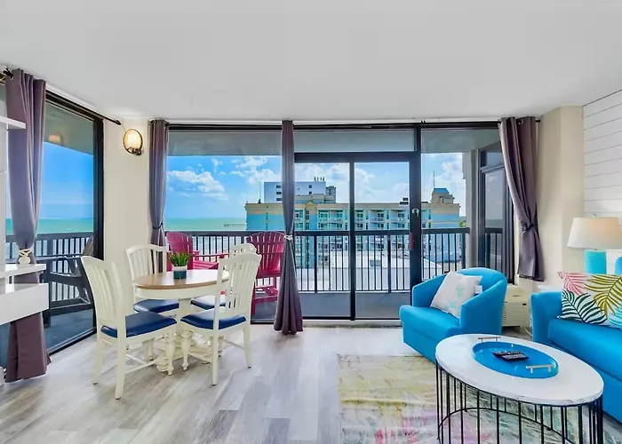 Situated nearly a 10-minute ride from the Second Avenue Pier, Modern And Fun Coastal Beach Escape! Pinnacle 1471 Myrtle Beach villa includes a swimming pool, as well as a hot tub to relax in.